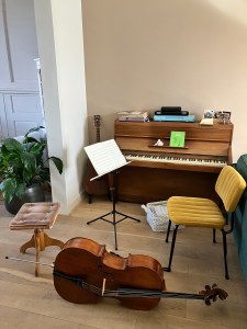 Bussum centrum / oost in haar woonkamer die speciaal is ingericht voor muziek maken. Wees welkom en neem contact op voor een proefles!
